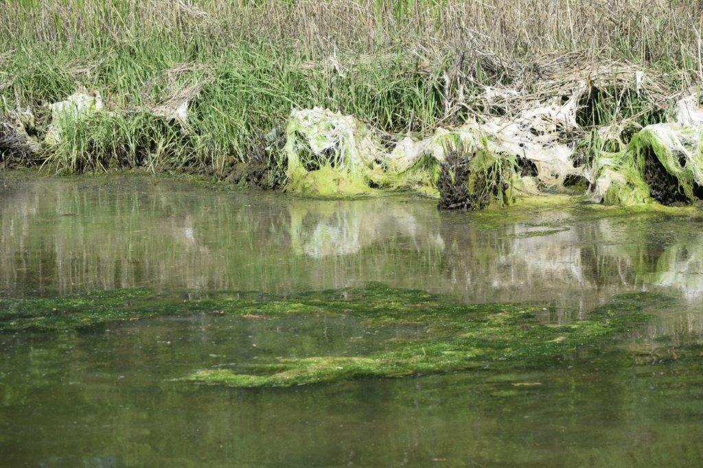 Giant algae blooms on Shoestring Bay May 30, 2023.